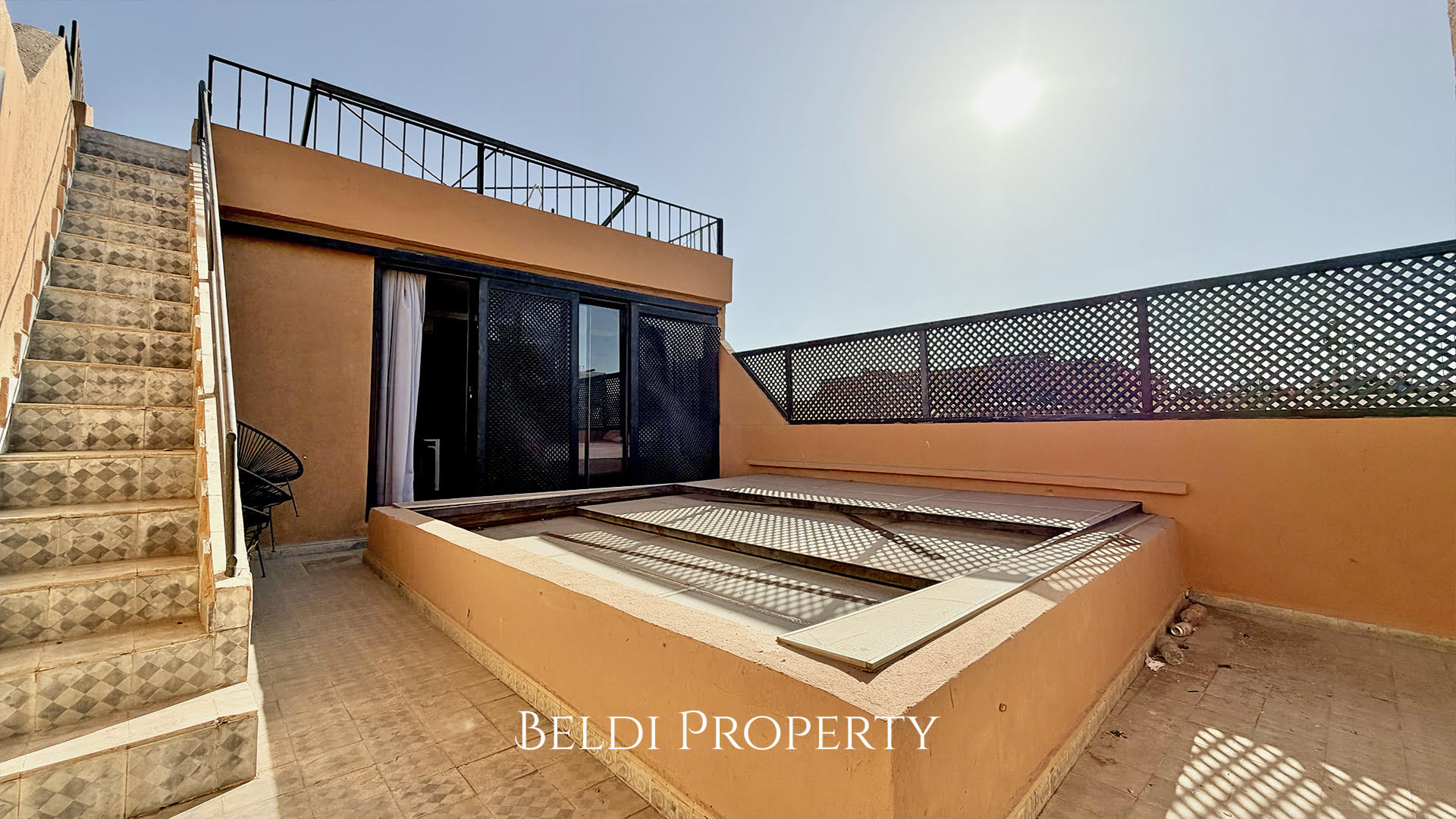 Ce dar à vendre à Marrakech comprend deux chambres et deux salles de bain, avec la possibilité d’aménager une troisième chambre avec salle de bain. Le patio lumineux abrite une piscine chauffée, idéale pour profiter d’un cadre de vie agréable toute l’année.
