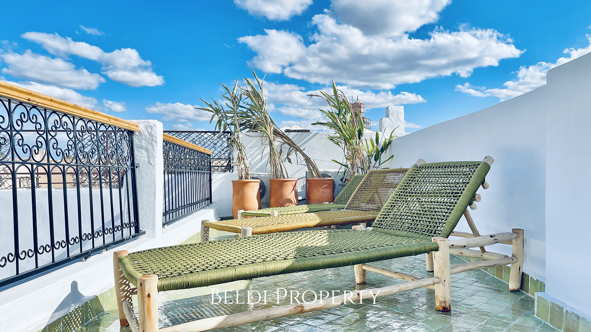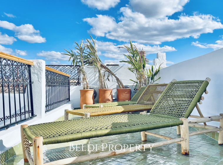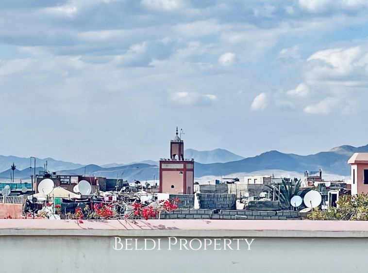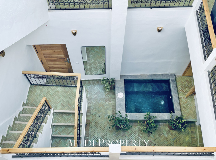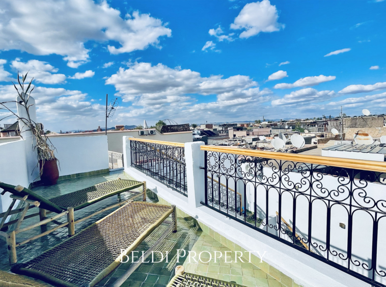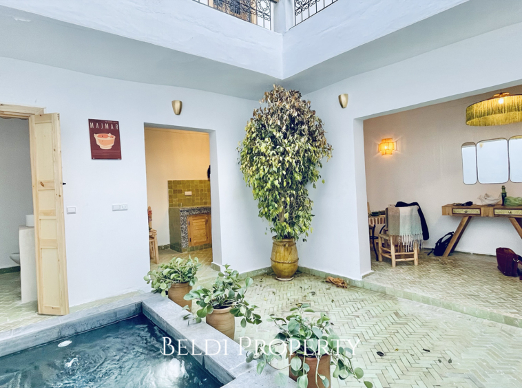 À vendre – Dar SKY STYLE : authentique dar avec patio, bassin et rooftop vue Koutoubia et mosquée Ben Youssef