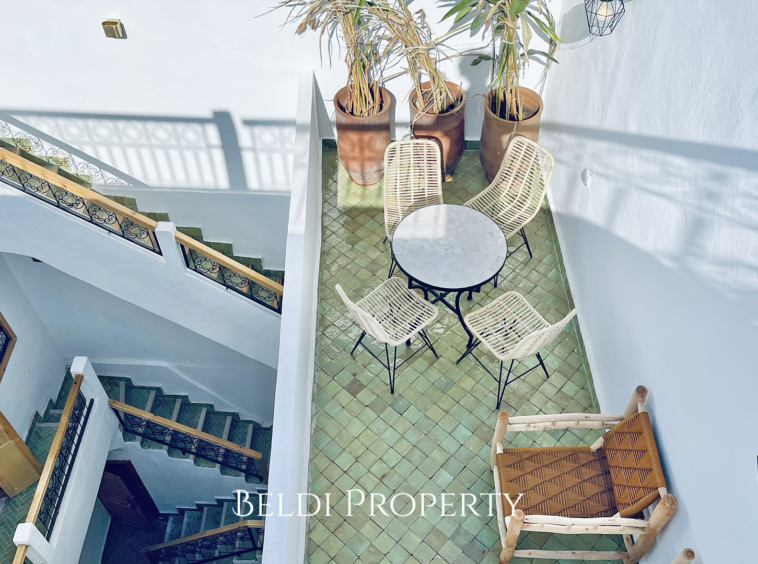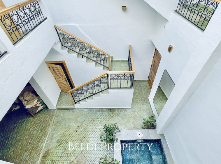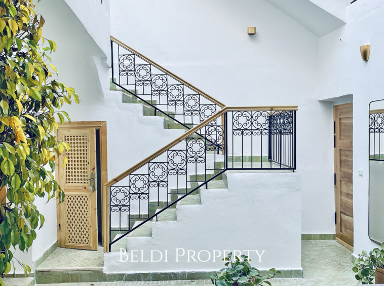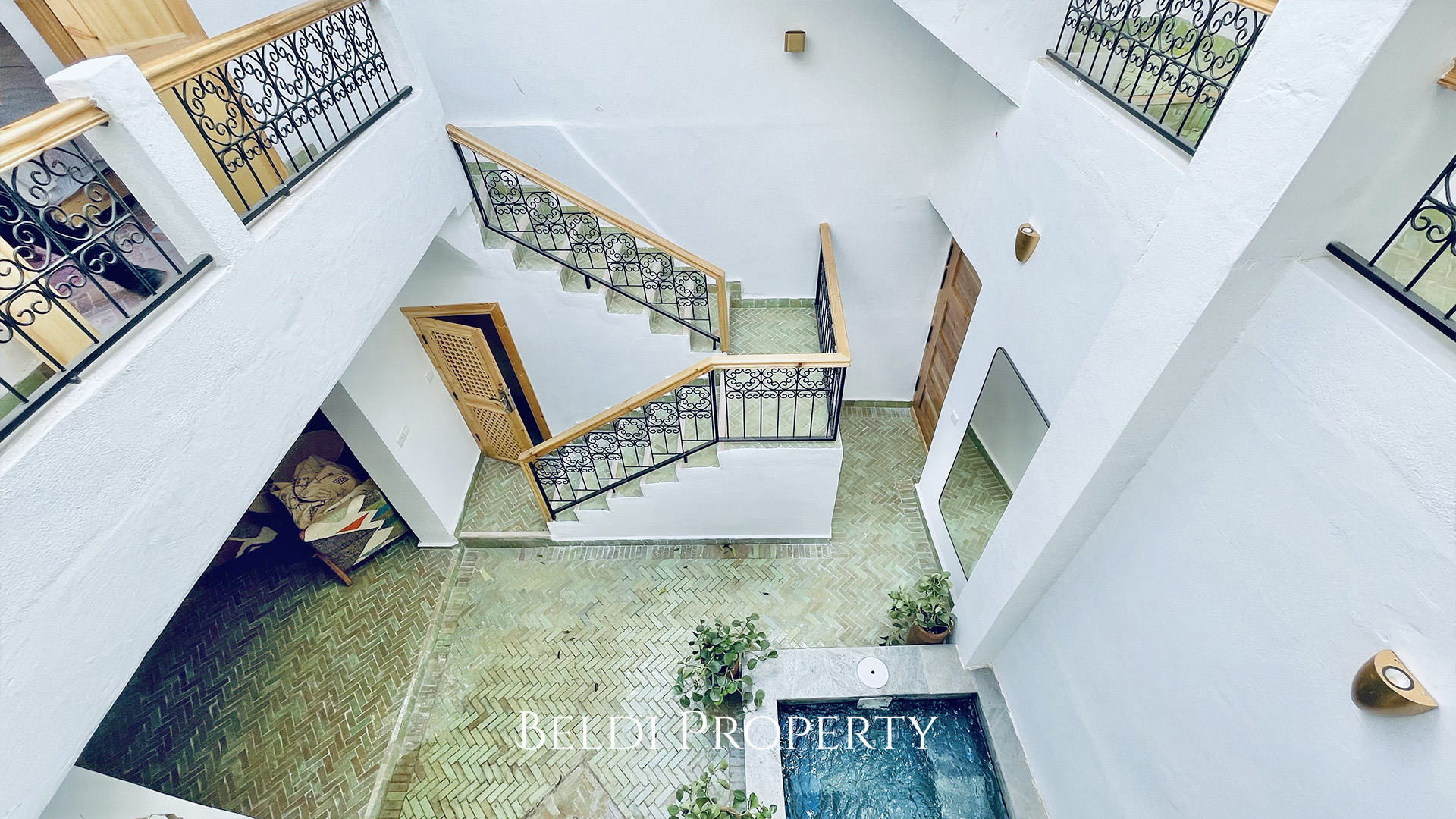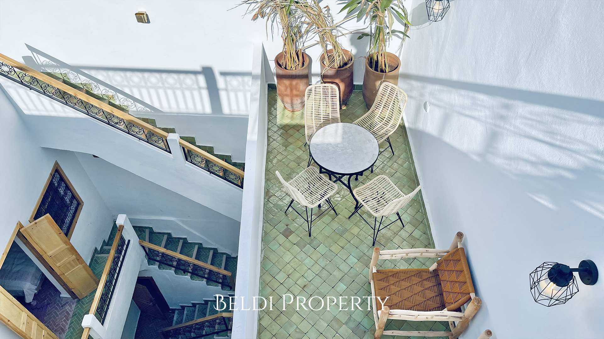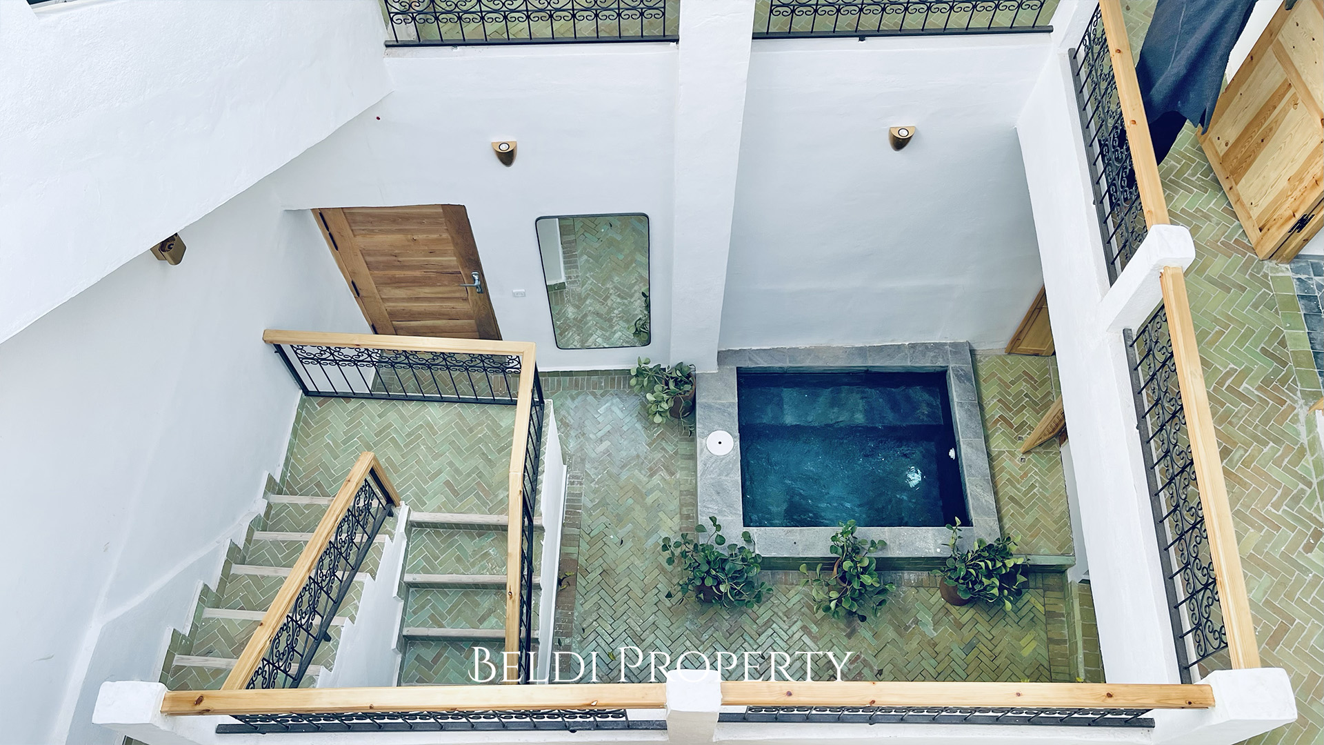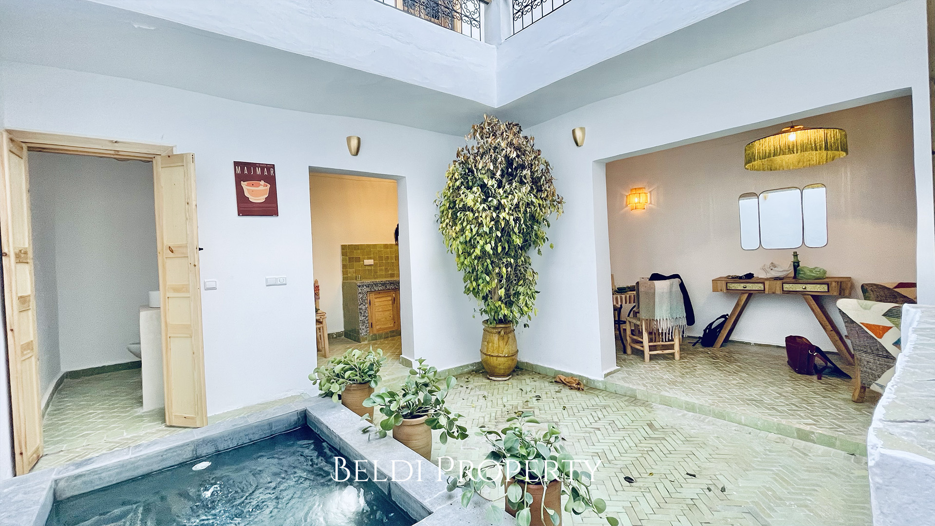 Idéalement situé dans le quartier prisé de Riad Larousse, à proximité immédiate de la médersa Ben Youssef, des Jardins Secrets et du musée du Parfum, ce Dar traditionnel est une opportunité unique pour un projet Airbnb ou une résidence privée.