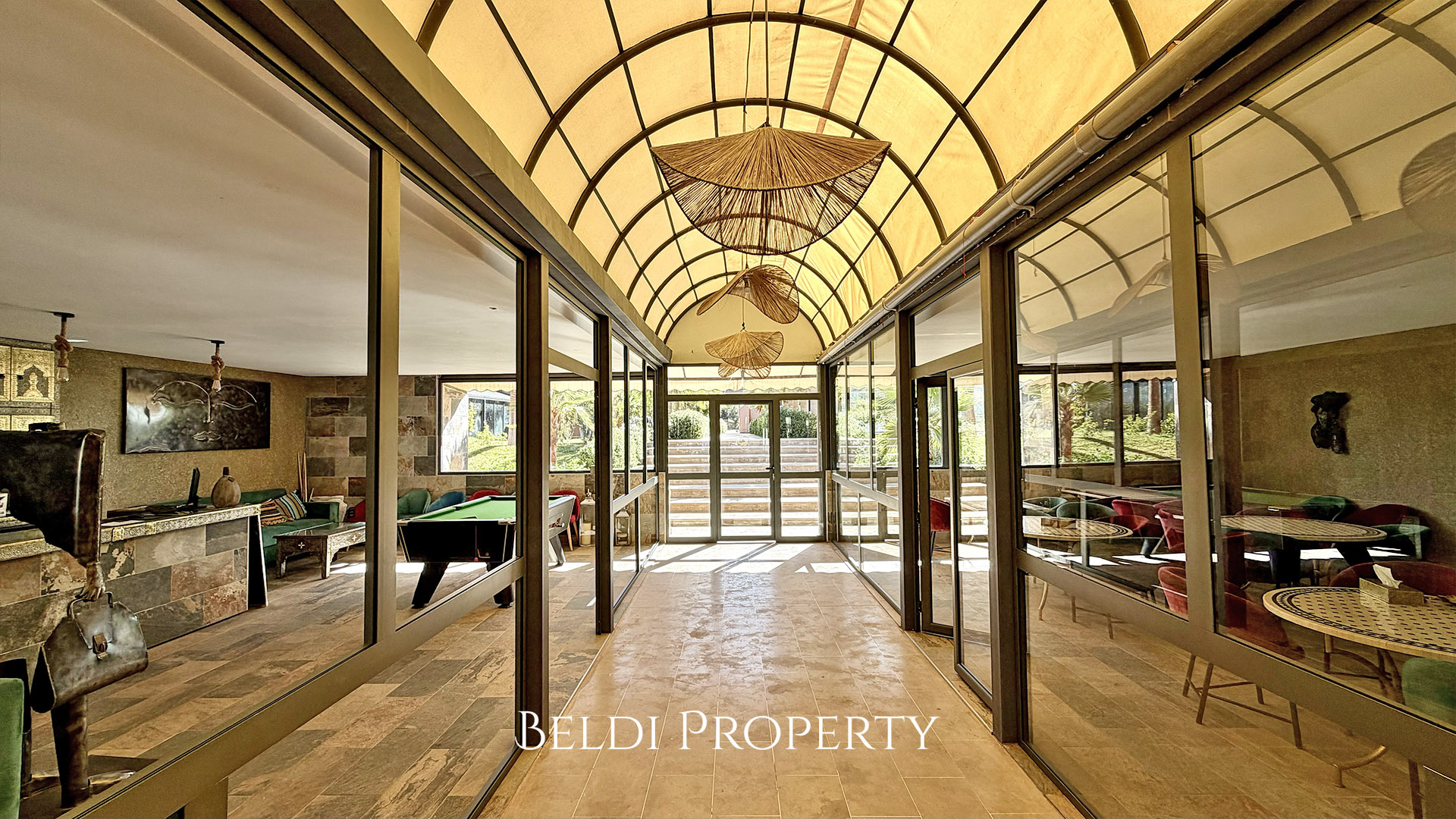 Le domaine bénéficie également d’une licence alcool, offrant la possibilité d’exploiter les espaces communs pour la restauration ou des événements. Pour le sport et les loisirs, il dispose de 2 terrains de padel et 2 piscines, dont une chauffée intégrée à la maison de fonction ou location supplémentaire… idéal également pour les Day Pass très tendance à Marrakech