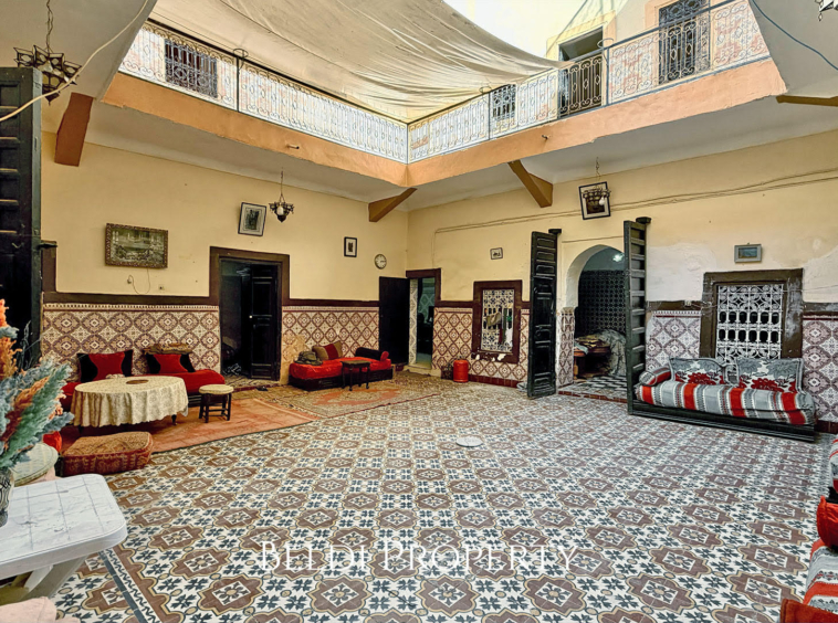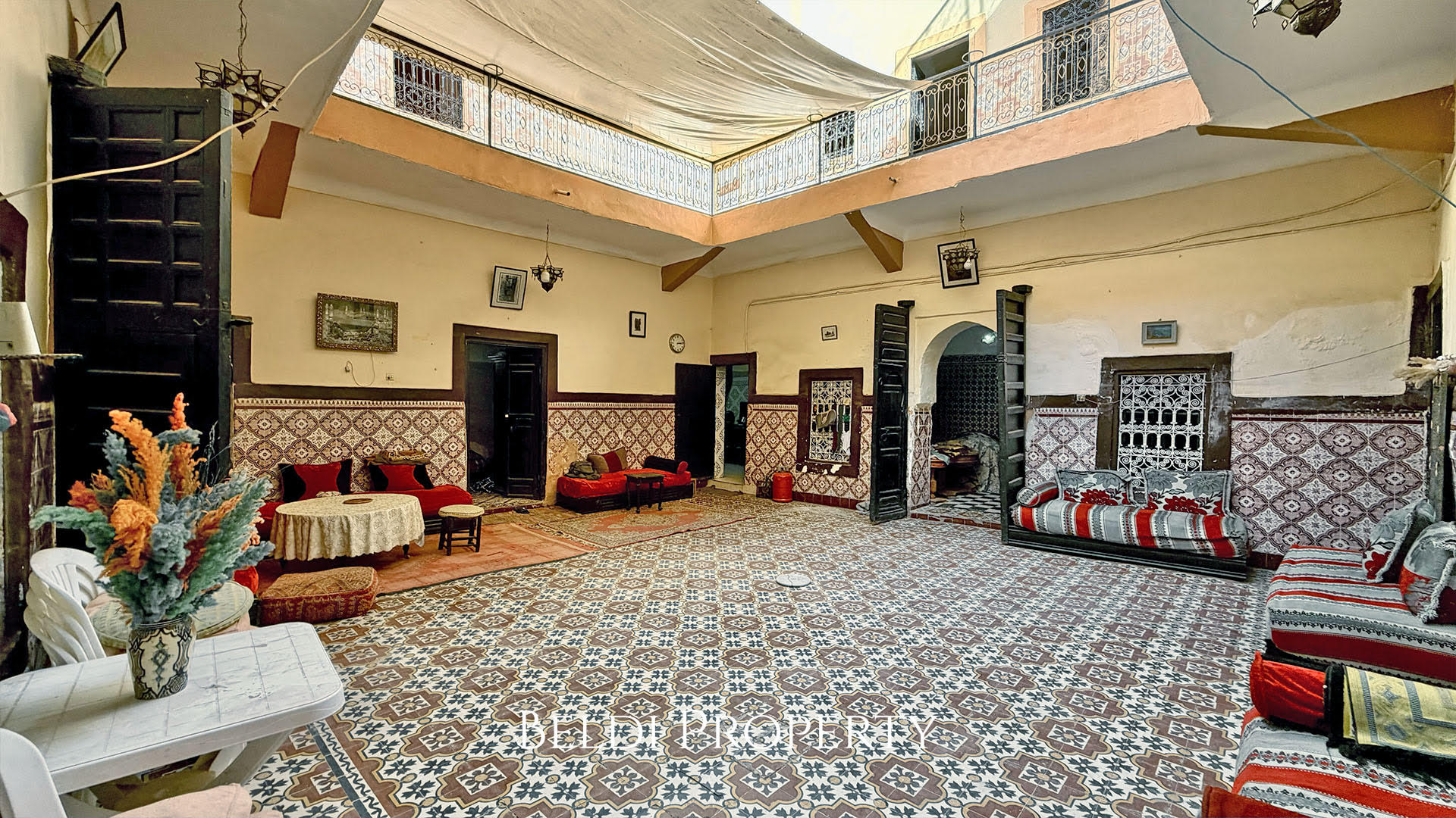 Situé au cœur du quartier historique de Sidi Ben Slimane, à proximité immédiate de Riad Laarous, Mouassine et Dar el Bacha, ce magnifique riad authentique offre un fort potentiel pour un projet de maison d’hôtes ou une résidence de charme.