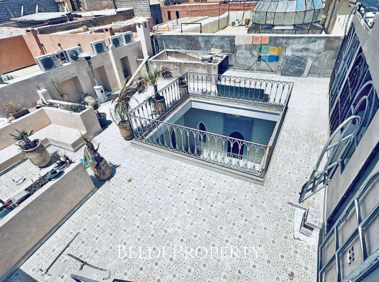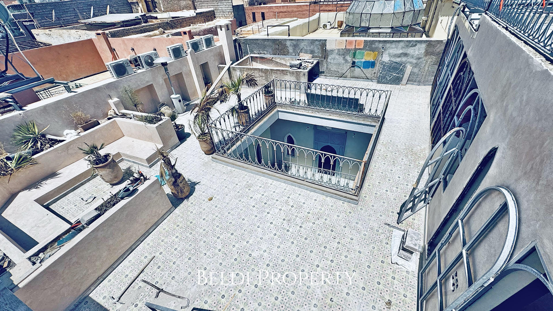 Riad rénové à vendre – Vue Koutoubia & toit terrasse avec piscine – Quartier Kennaria, Marrakech