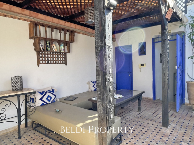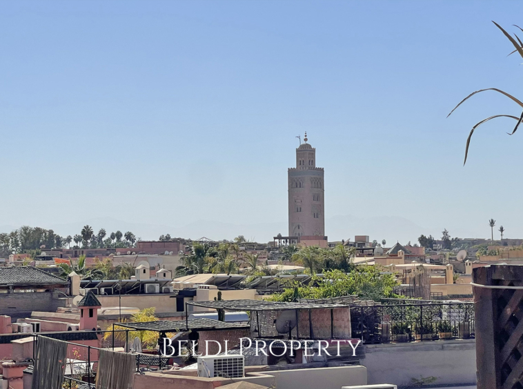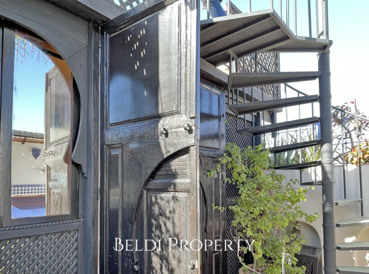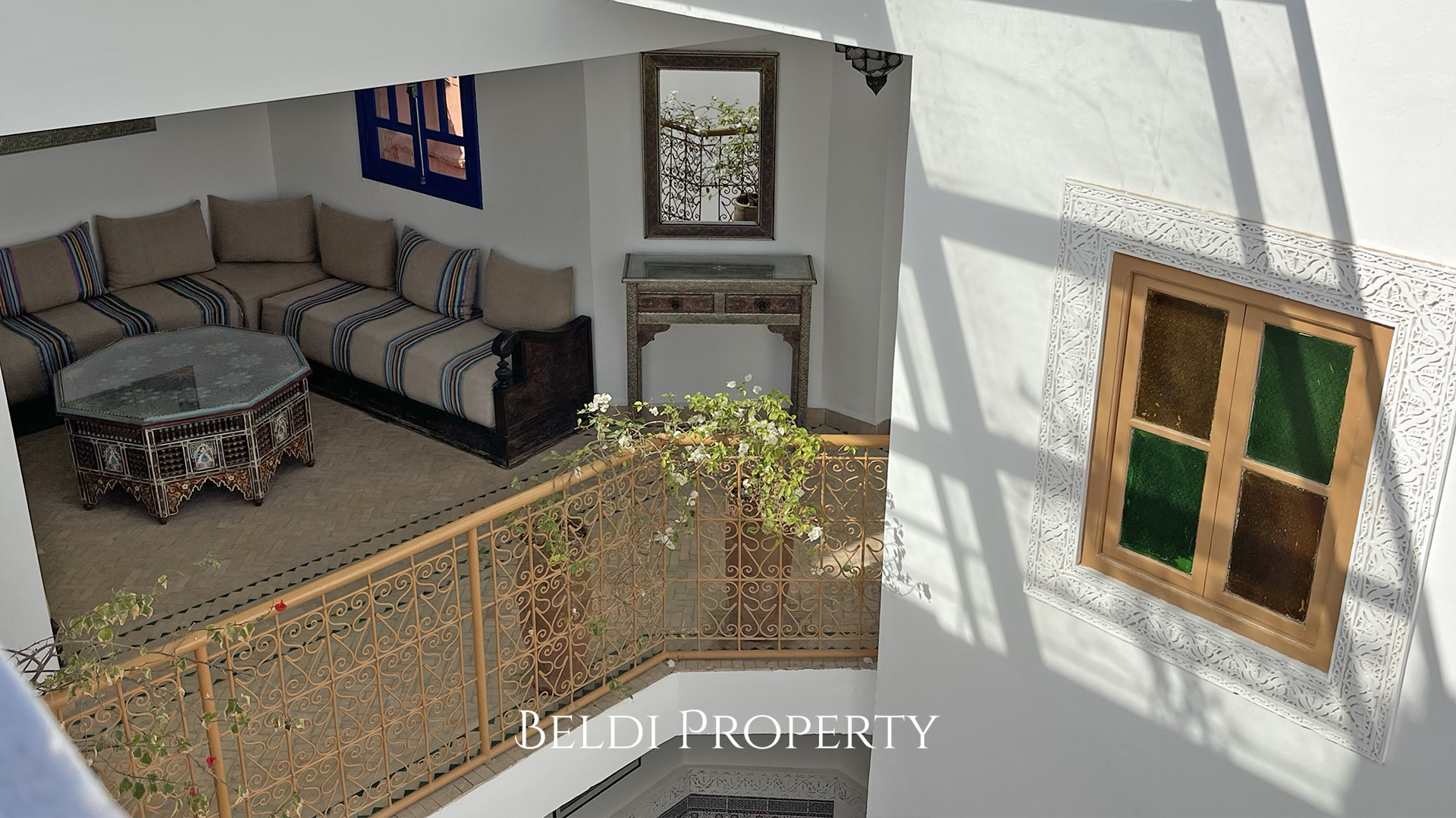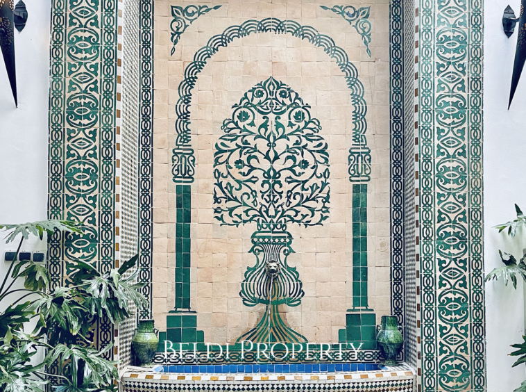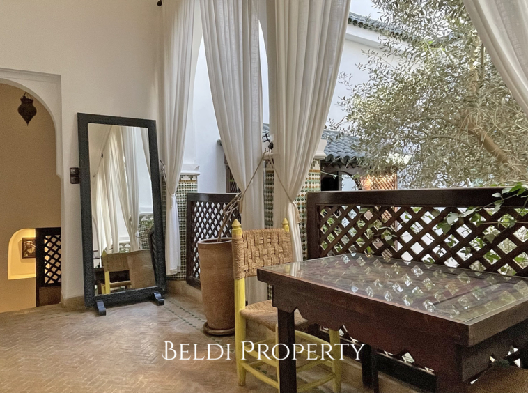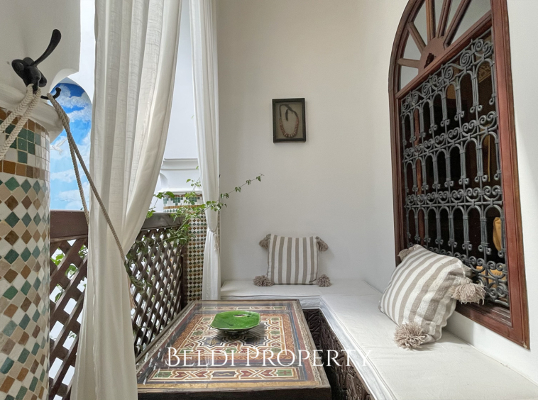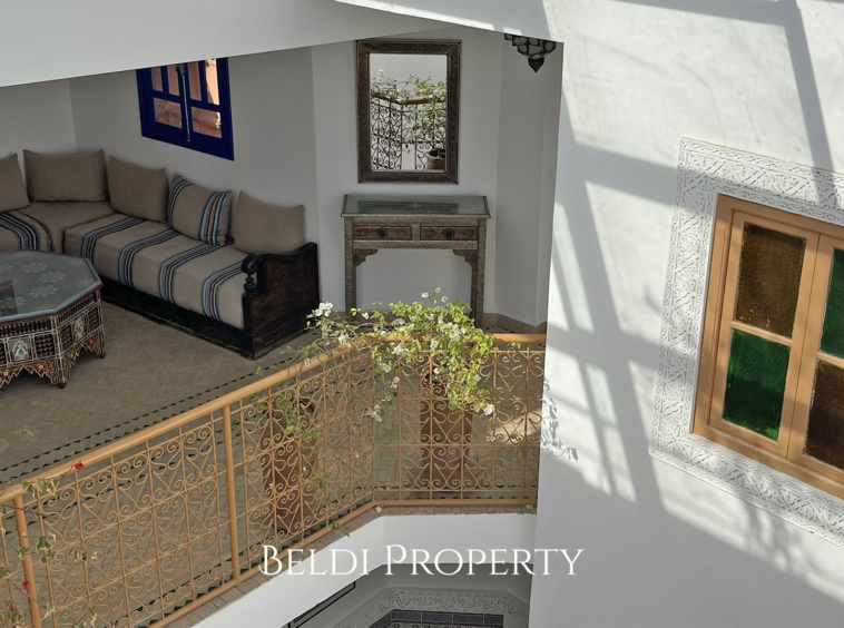 Découvrez un riad d’exception situé au cœur vibrant de la médina historique de Marrakech, dans le quartier emblématique de Mouassine. Véritable témoignage du raffinement architectural marocain et andalou, cette demeure titrée de 240 m² allie authenticité et élégance.