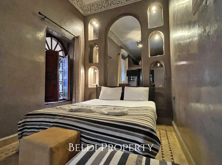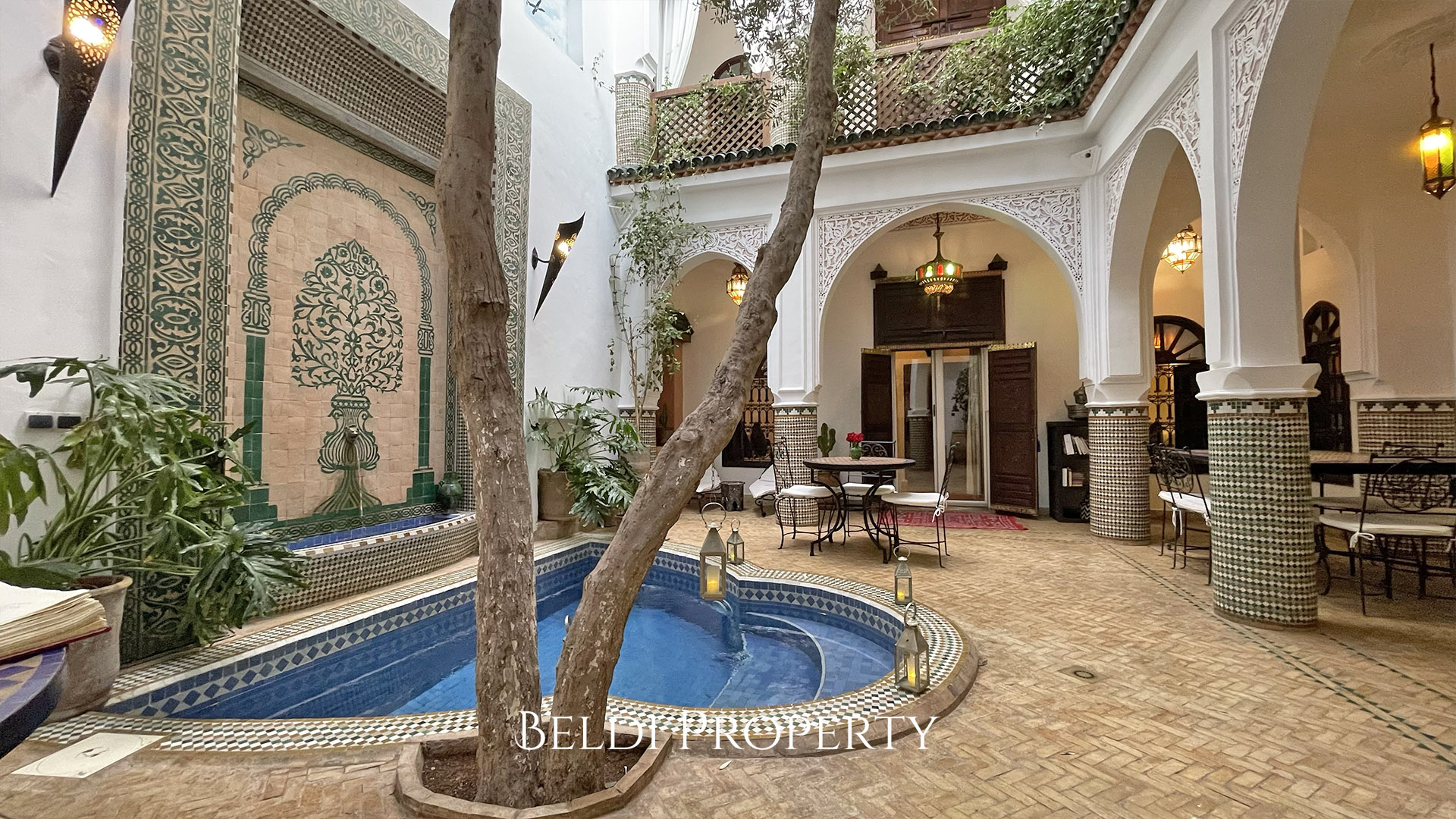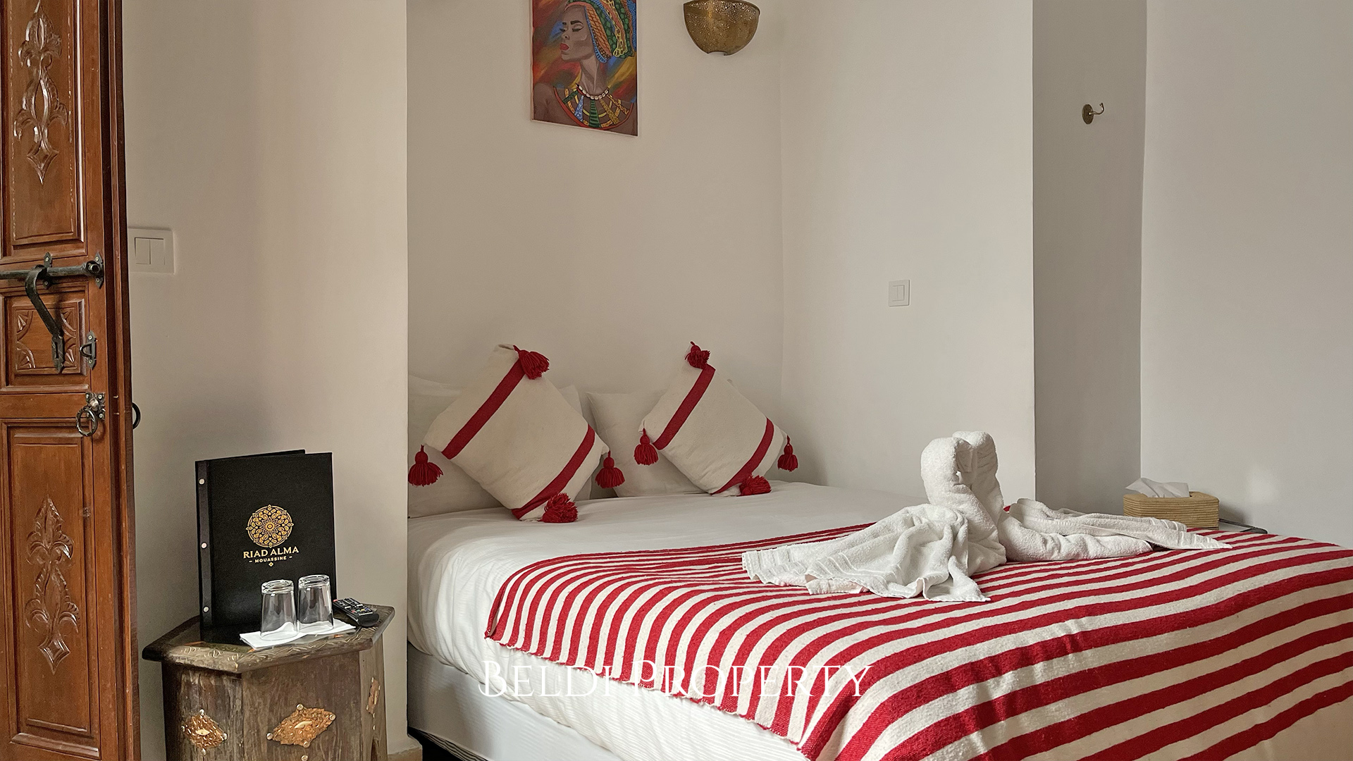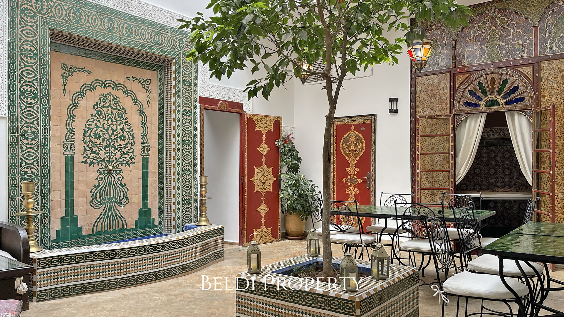 Doté de 12 chambres et suites, toutes équipées de salles de bains privatives et de climatisation réversible, ce riad est prêt pour une exploitation hôtelière immédiate. Un hammam traditionnel et une salle de massage viennent compléter ce cadre idyllique, idéal pour une expérience immersive dans la médina authentique.