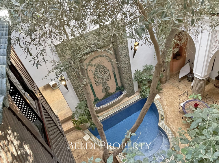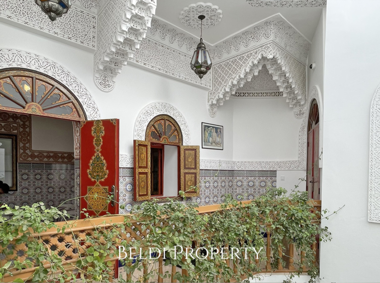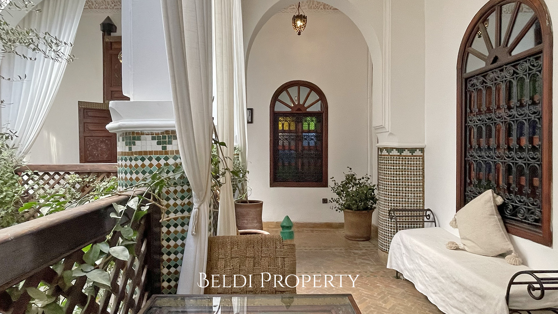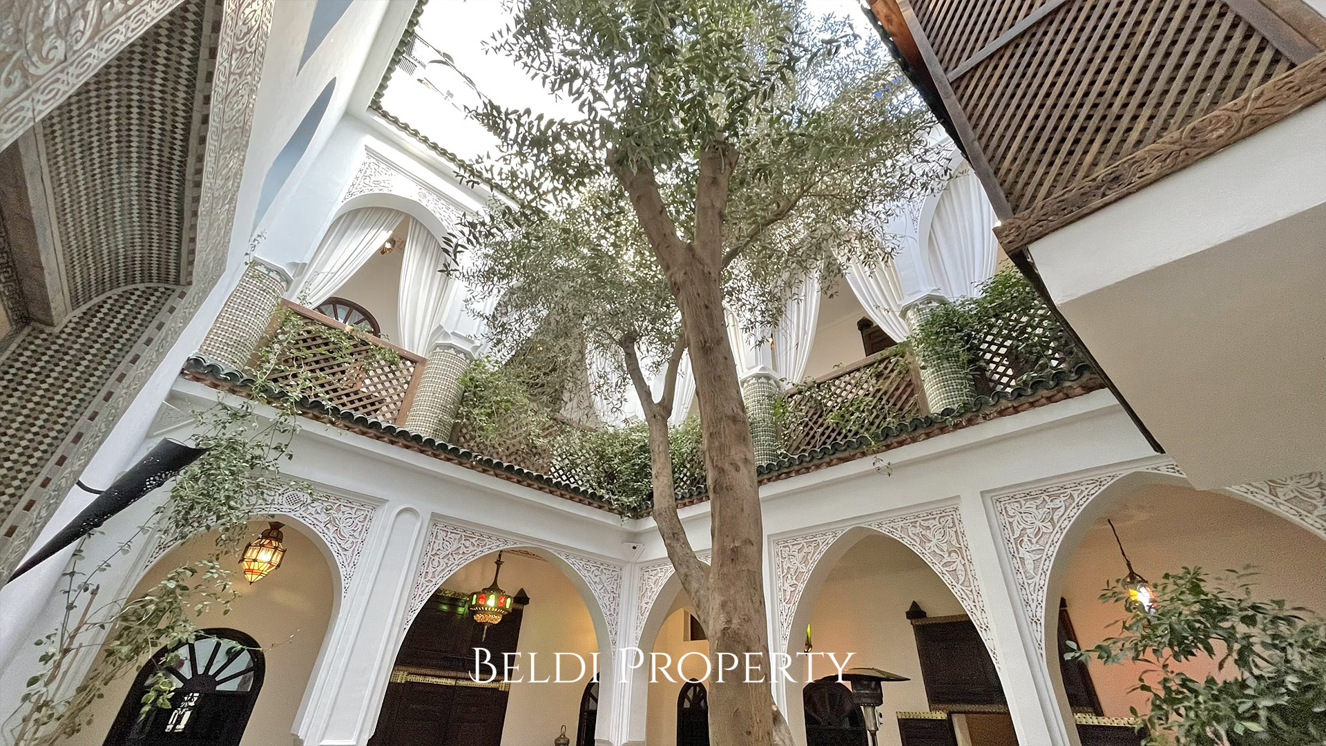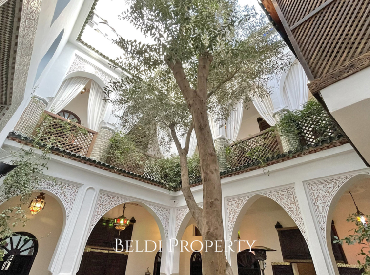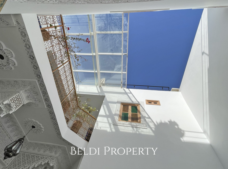 Doté de 12 chambres et suites, toutes équipées de salles de bains privatives et de climatisation réversible, ce riad est prêt pour une exploitation hôtelière immédiate. Un hammam traditionnel et une salle de massage viennent compléter ce cadre idyllique, idéal pour une expérience immersive dans la médina authentique.